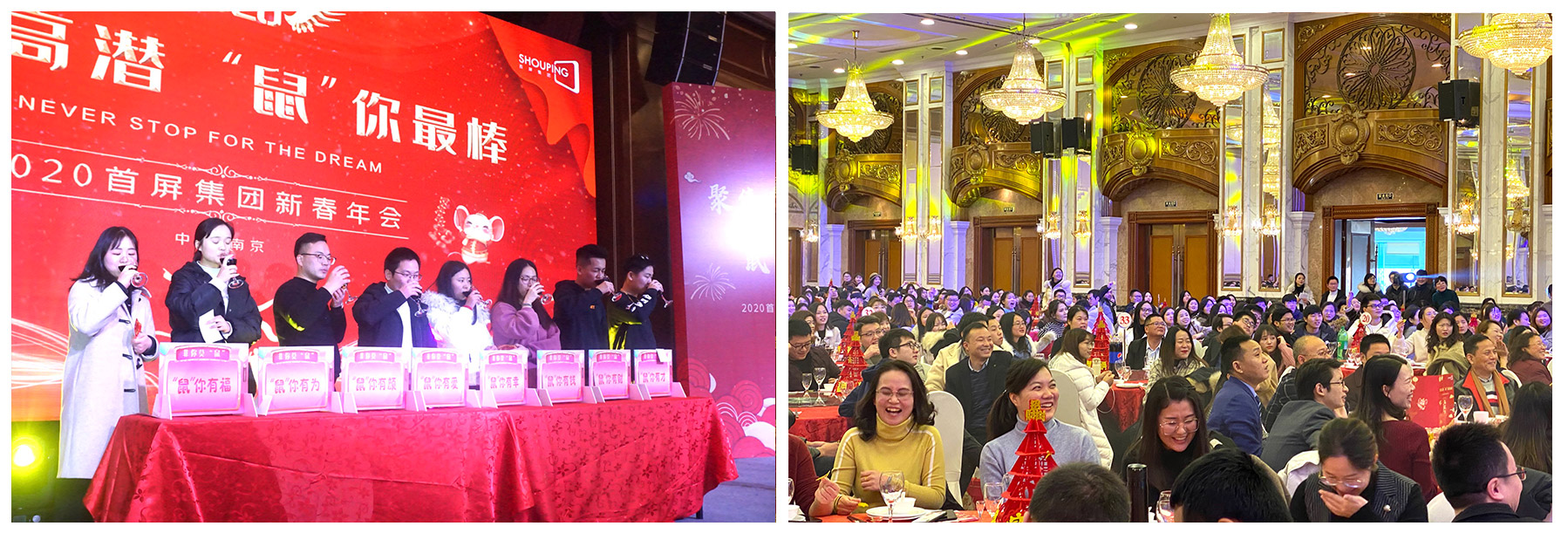 2020年1月19日,“聚焦高潛 鼠你最棒”——2020首屏集團(tuán)新春年會(huì)在維景國(guó)際大酒店圓滿落幕!首屏集團(tuán)南京、南通地區(qū)的近700名同學(xué)相聚一堂,共話團(tuán)圓、喜迎新春。熱鬧喜慶的會(huì)場(chǎng),精彩紛呈的表演、歡樂趣味的游戲、動(dòng)人心魄的抽獎(jiǎng)...讓年會(huì)格外熱鬧、驚艷。現(xiàn)場(chǎng)的每個(gè)角落都充斥著新春的喜悅,每個(gè)人臉上都洋溢著快樂的笑容,每個(gè)瞬間都成為大家心中美好的回憶。