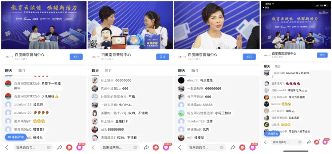 直播現(xiàn)場(chǎng),“教育云賦能 喚醒新活力”——百度營銷助力南京教育培訓(xùn)業(yè)復(fù)蘇公益計(jì)劃正式啟動(dòng)。此次公益計(jì)劃意在通過系列舉措,進(jìn)一步加速南京教育培訓(xùn)業(yè)復(fù)蘇的腳步,推動(dòng)教育機(jī)構(gòu)在后疫情時(shí)代下的快速發(fā)展。