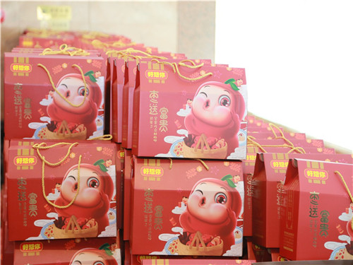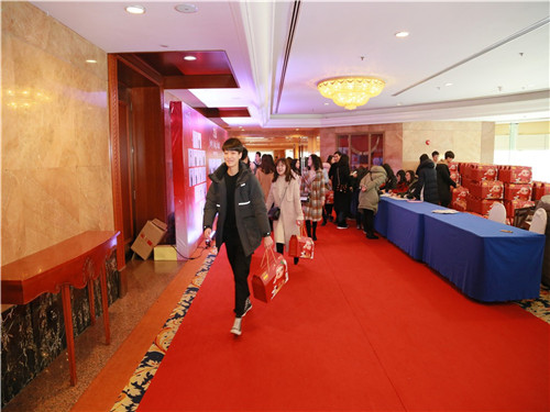 不一會,員工陸續(xù)抵達會場,有序地在外場禮品區(qū)簽字領取伴手禮盒,每個人臉上都洋溢著歡樂的笑容。
