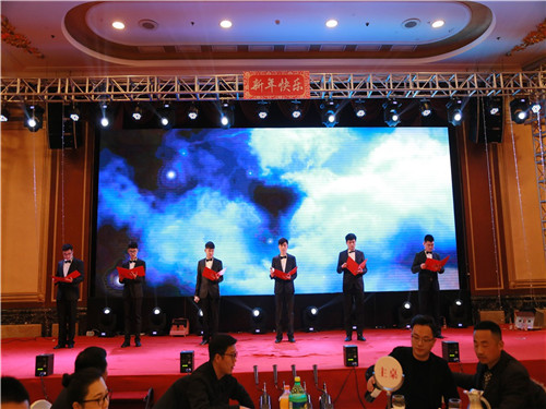 頒獎典禮后政總上臺為本次的新春年會致祝酒詞,政總期望大家在新的一年工作可以更上一層樓,生活可以和和睦睦。最后全場跟隨政總一起舉起酒杯,將杯中酒一飲而盡,年會的表演環(huán)節(jié)正式開始。